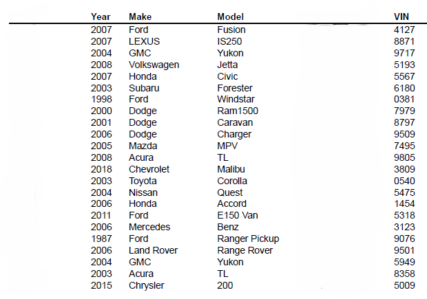 Viewing/ Sign in begins @ 9: 00 am. Auction begins @ 10:00 am sharp. You must be 18 years old to bid on vehicle and have a Valid State issued I.D.. $100 refundable deposit required to sign in and be assigned a bidder number. If you are the winning bidder, Vehicle must be paid for at the end of auction. Vehicle must be removed from our site an hour after auction is ended. Arrangements can be made if purchasing multiple vehicles. All sales are "As Is."